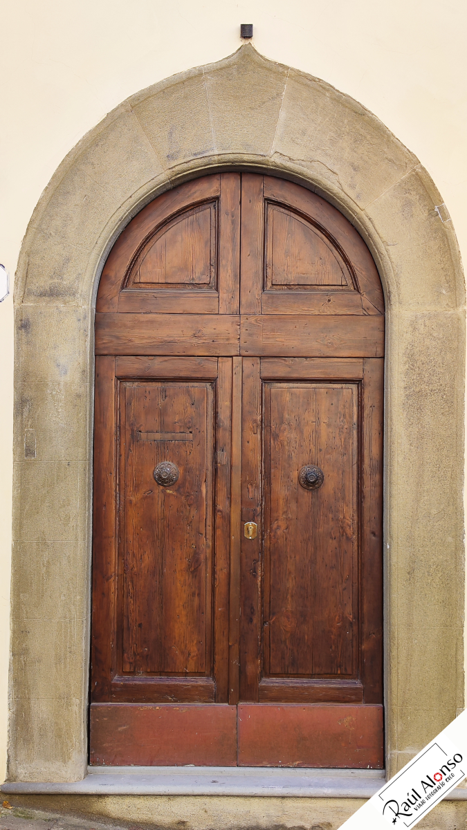Esta humilde puerta, que formaba parte de la sexta cerca defensiva de la ciudad, recibe el nombre de la abadía que visitaremos posteriormente. Está decorada sencillamente con los emblemas heráldicos de la ciudad en pietra serena. ¿Estás preparado para subir la cuesta? ¡Adelante!
