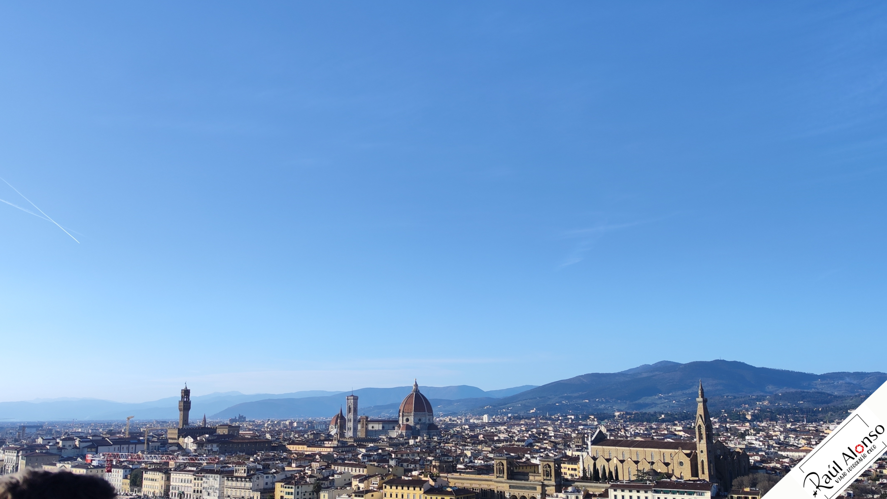 Desde lo alto del Piazzale Michelangelo, Florencia se revela como un lienzo desplegado al sol. La ciudad parece detenida en el tiempo, envuelta en la luz ámbar que acaricia las tejas rojas, las torres y la majestuosa cúpula del Duomo. Es un lugar donde la mirada se detiene para contemplar, y el alma se ensancha. Las sombras de los cipreses se alargan como pinceladas sobre el Arno, y todo el Renacimiento parece respirar con un ritmo lento y sagrado.